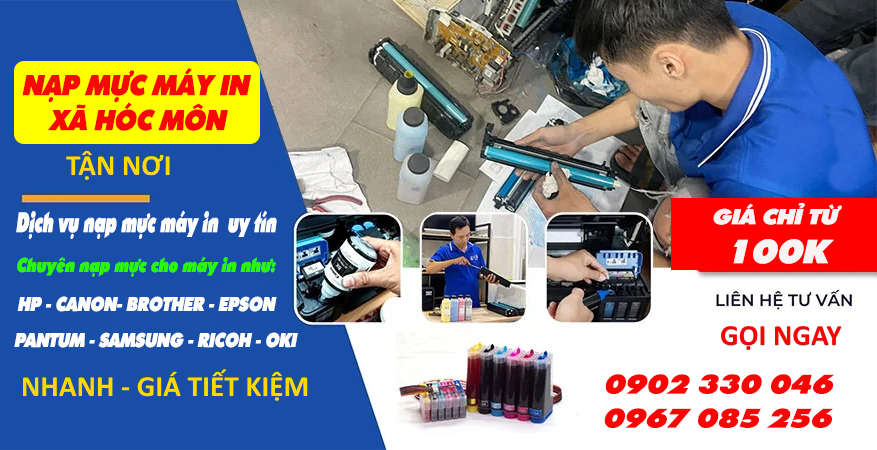 - Dịch vụ nạp mực máy in xã Hóc Môn TPHCM: Chuyên nạp mực, Sửa chữa tất cả các dòng máy in uy tín tận nơi